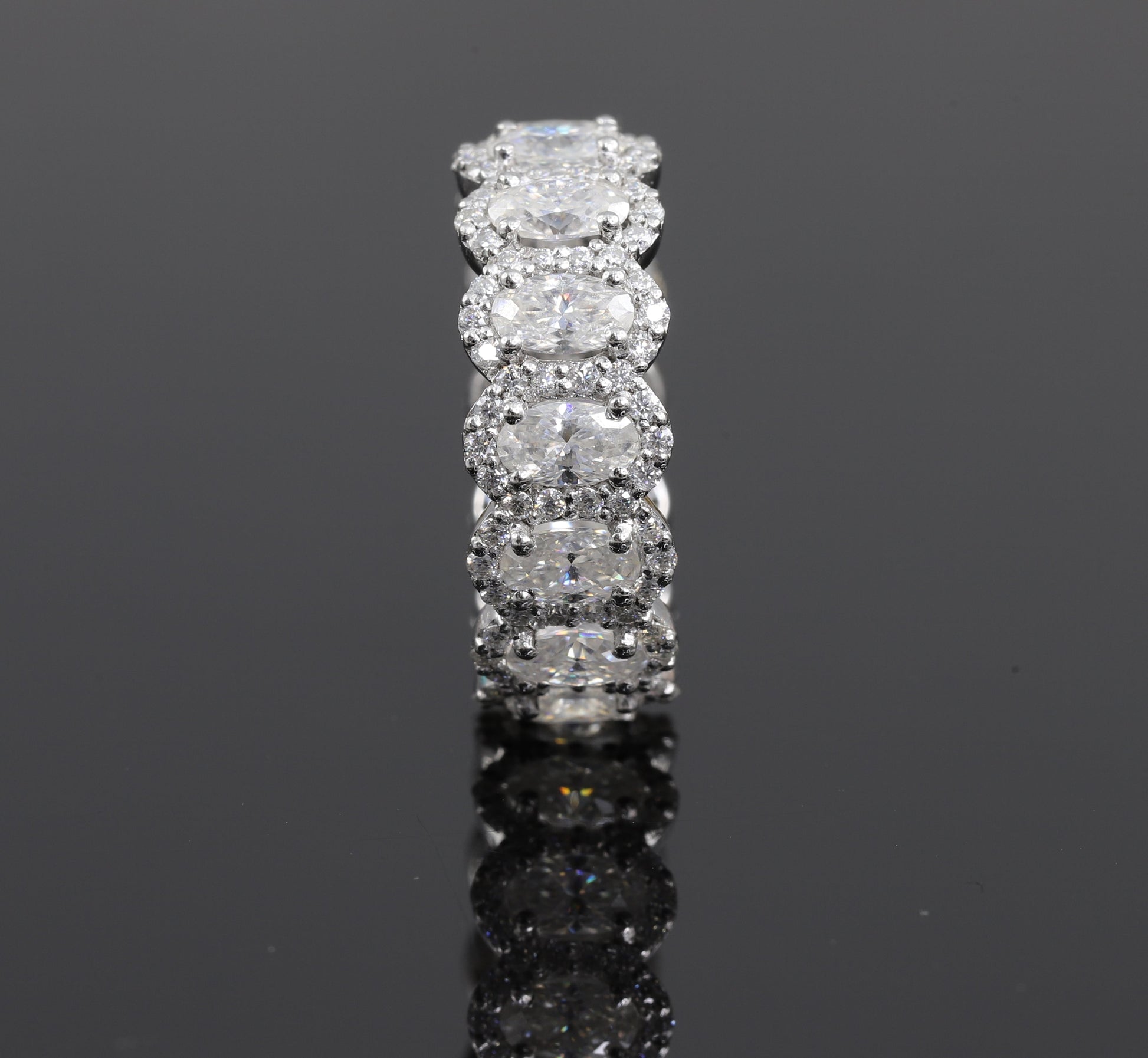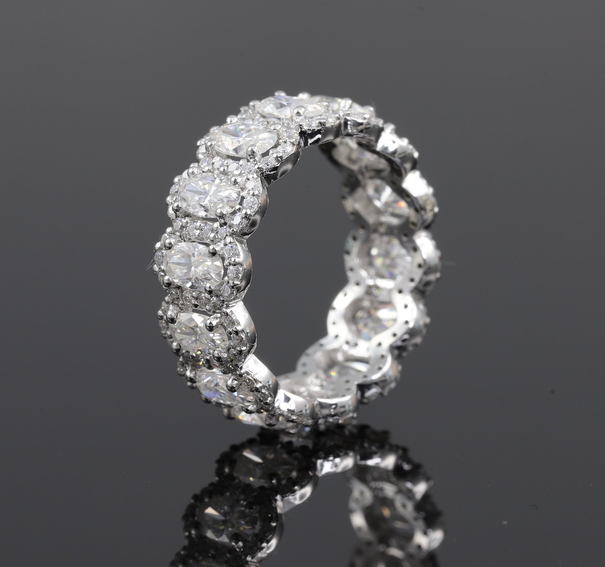 Halo Engagement Wedding Band, Full Eternity Band, Oval Cut White Diamond Band, Diamond Jewelry, Anniversary Gift For Her, 14K White Gold