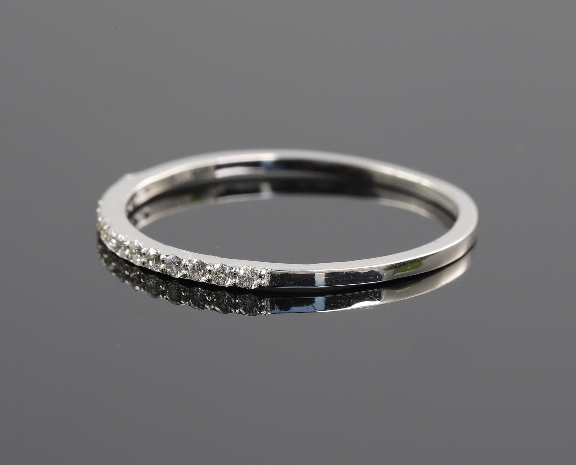 Half Eternity Micro Pave Moissanite Diamond Band, Wedding Band, Half Eternity Band, Delicate Pave Ring, Diamond Band, 14K Solid White Gold Ring