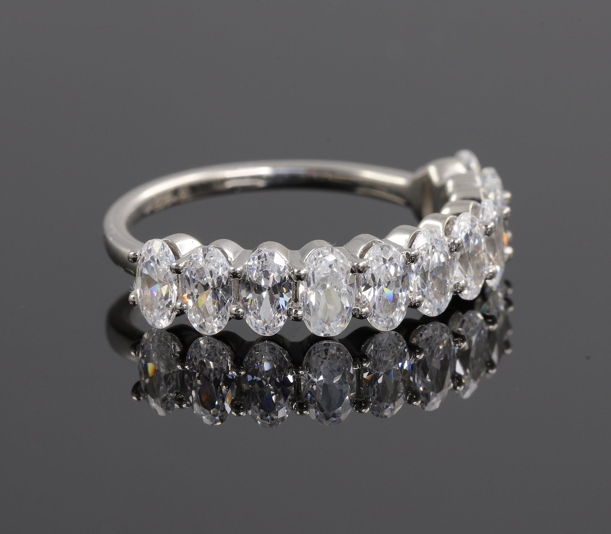 Half Eternity Band, Oval Cut Moissanite Wedding Band, 14K White Gold Oval Diamond Band, Engagement Ring