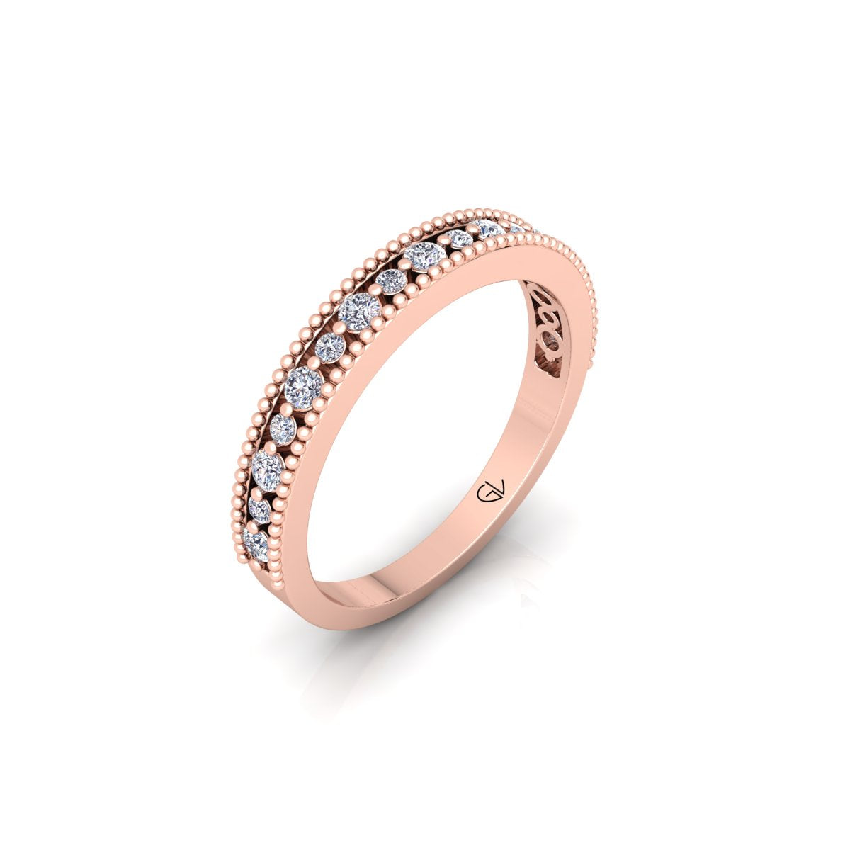 Vintage Inspired Half Eternity Wedding Band, 0.18 TCW Round Diamond Engagement Ring, Certified Round Lab Grown Diamond Ring, Channel Set Milgrain Eco-Friendly Women's Band