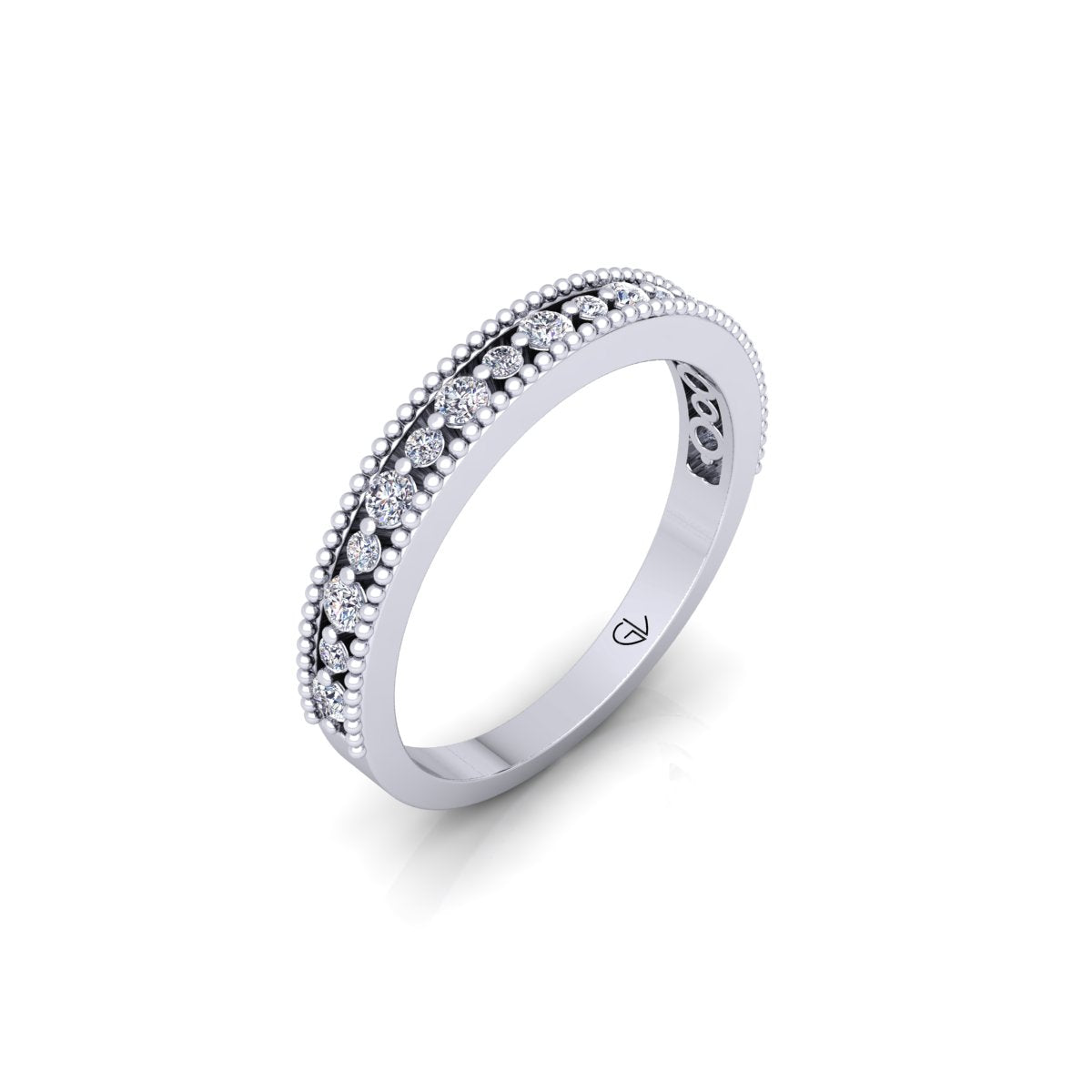 Lab Grown Diamond Vintage Inspired Half Eternity 14K White Gold Wedding Band
