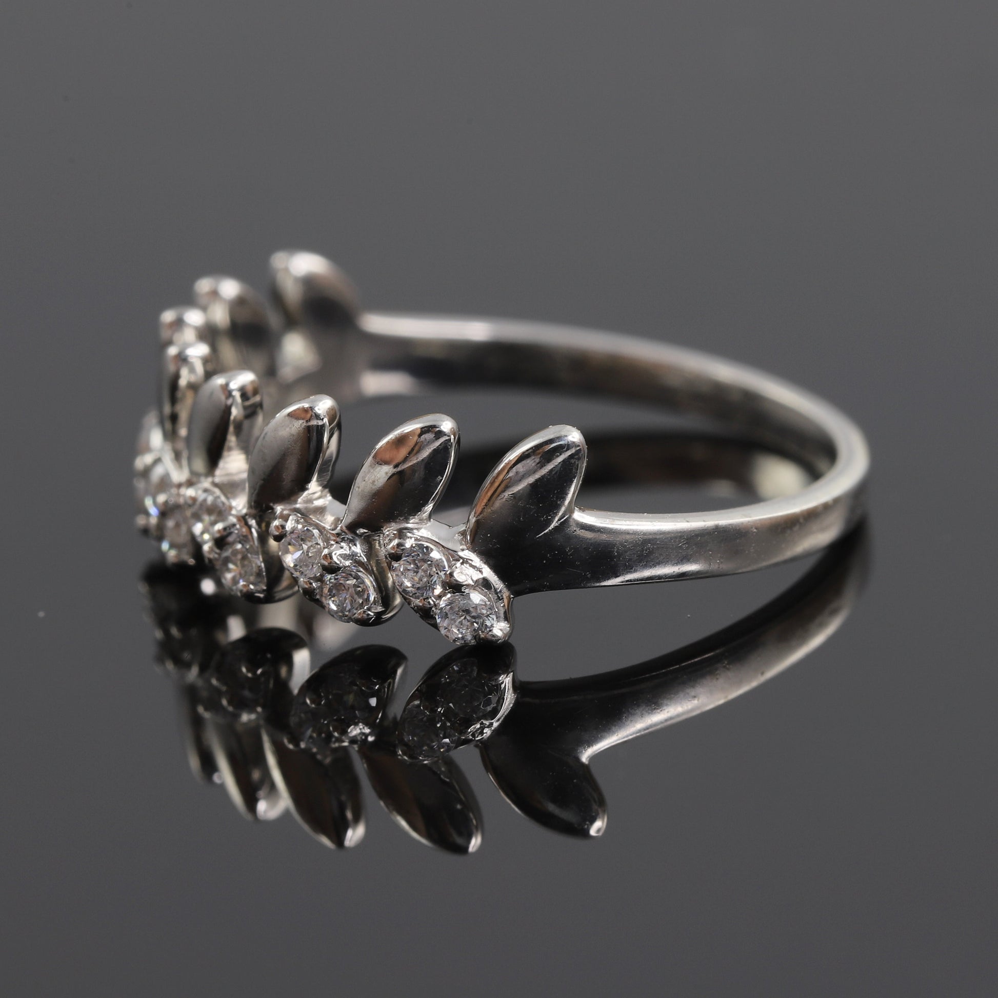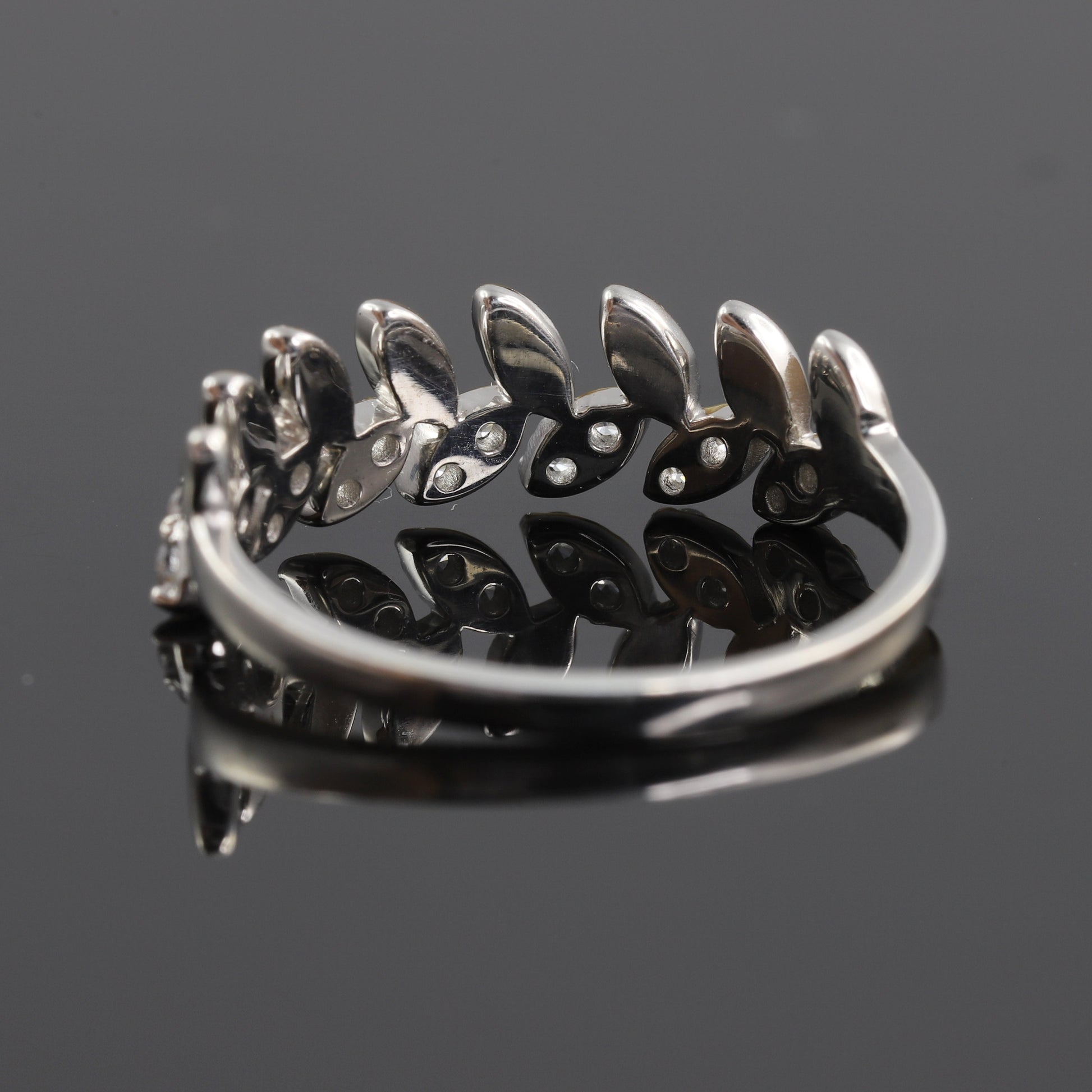 Leaf Inspired Vintage Moissanite Wedding Band, Half Eternity Round Moissanite Diamond Ring, Wedding Ring For Woman, 14K Solid White Gold Band