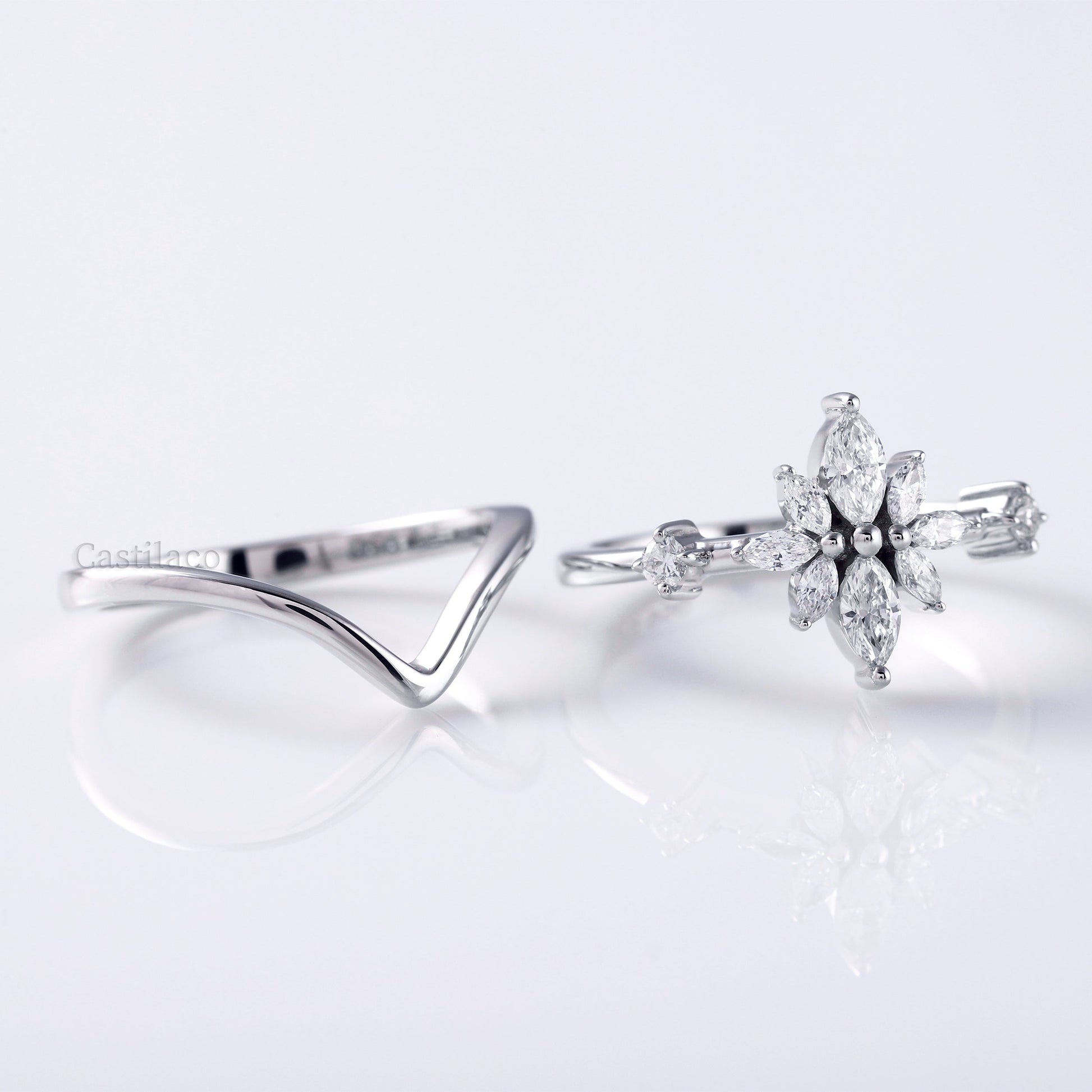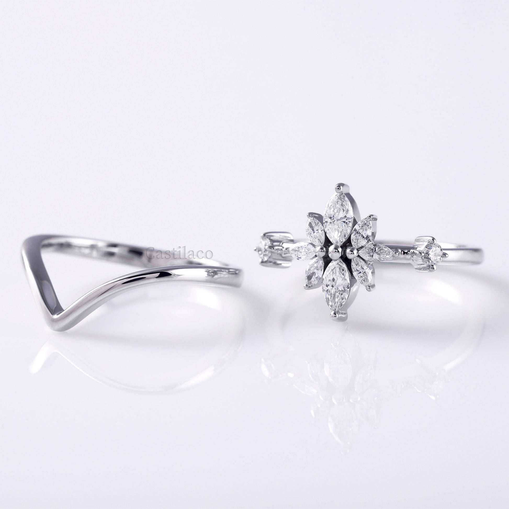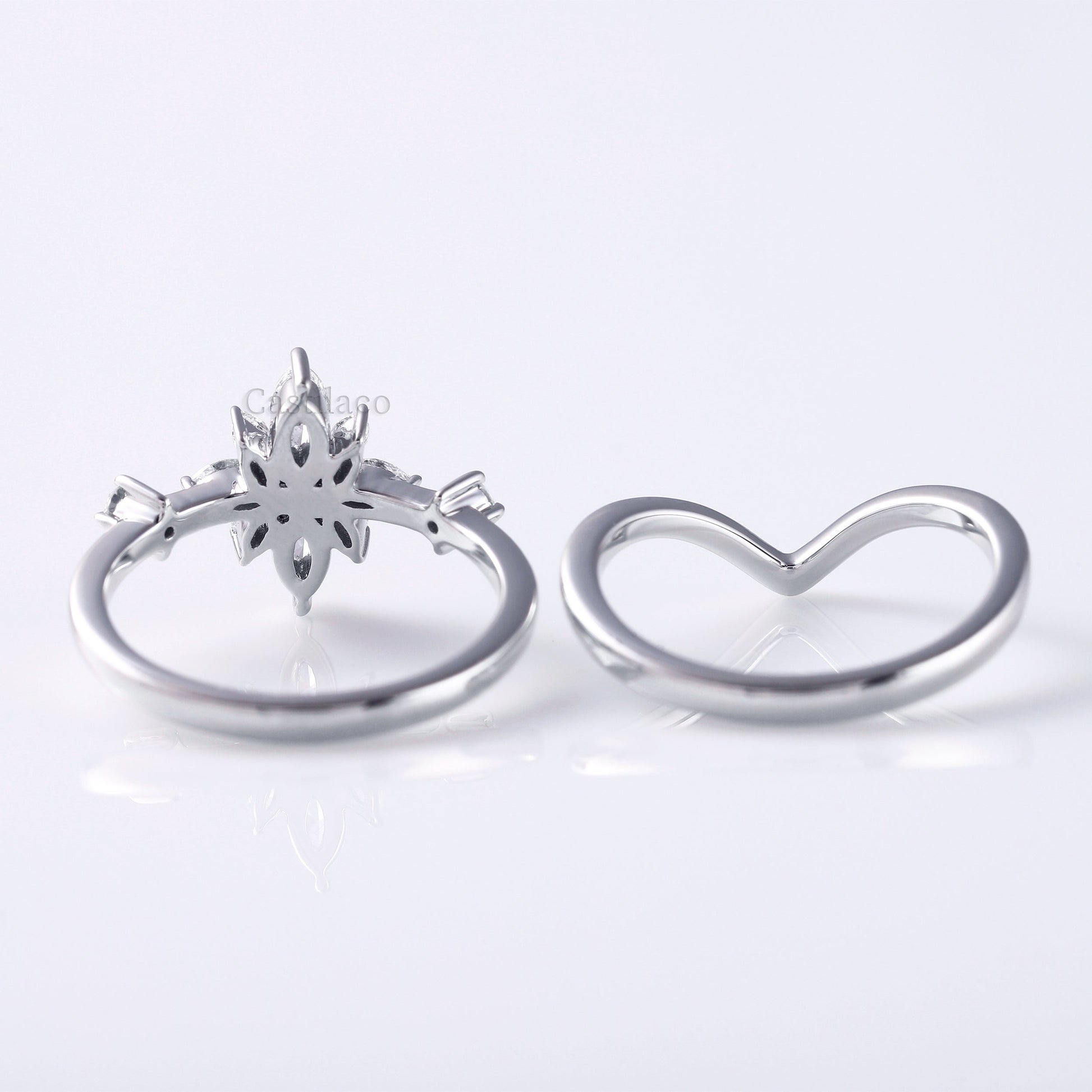 Marquise Moissanite Star Shape Diamond Engagement Ring Set