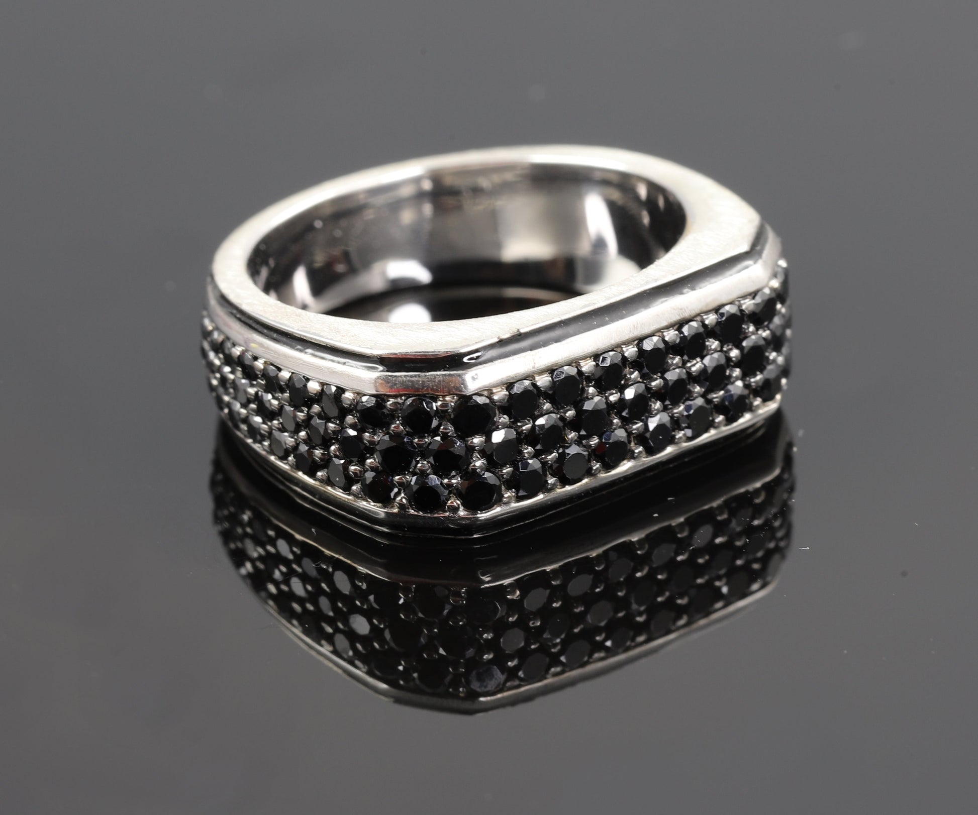 Black Diamond Men's Ring, Black Round Moissanite Diamond Men's Engagement Ring, Micro Pave Set Ring, Wedding-Groom Ring