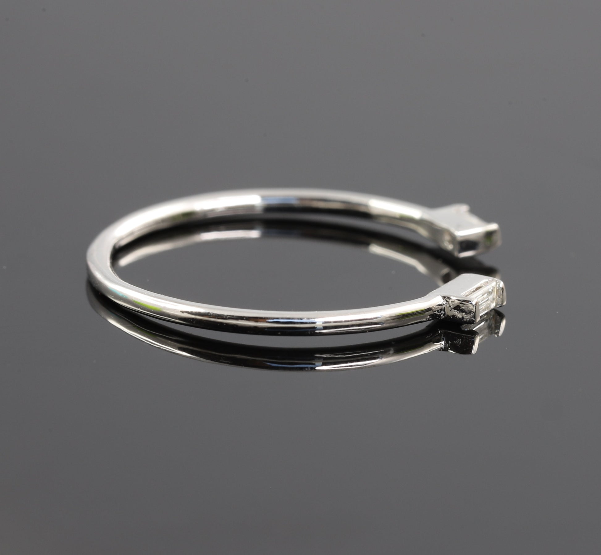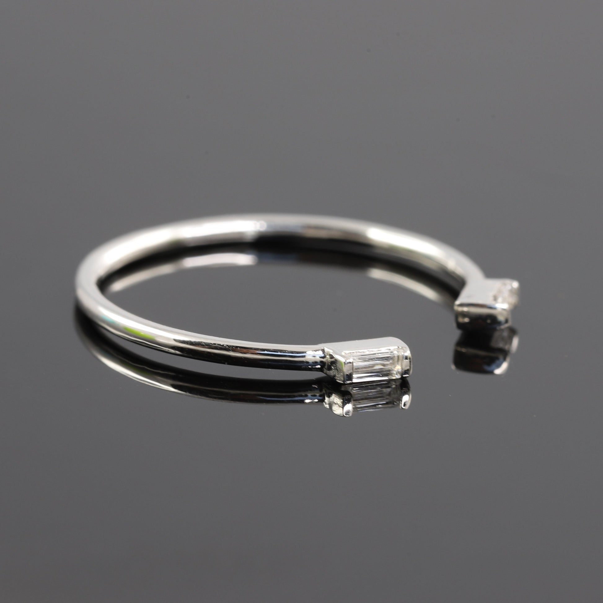 Open Cuff Wedding Band, Open Diamond Band, Baguette Cut Moissanite Band, Two Stone Ring, Minimalist Ring, Bar Setting Band