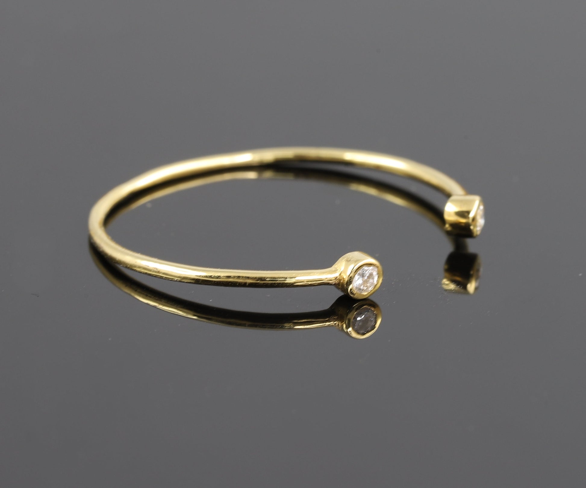 Open Diamond Ring, Dual Diamond Band, Moissanite Diamond Open Cuff Ring, Two-Stone Ring, Bezel Set Ring, Thin Stackable Wedding Ring