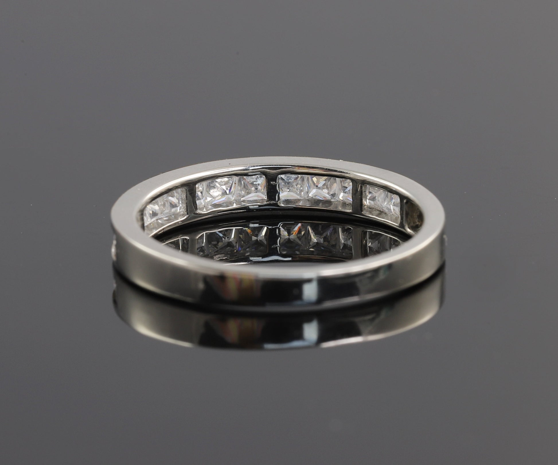 Channel Set Half Eternity Band, Princess Cut Moissanite Diamond Wedding Band, One Layer Diamond Band, 14K White Gold Ring