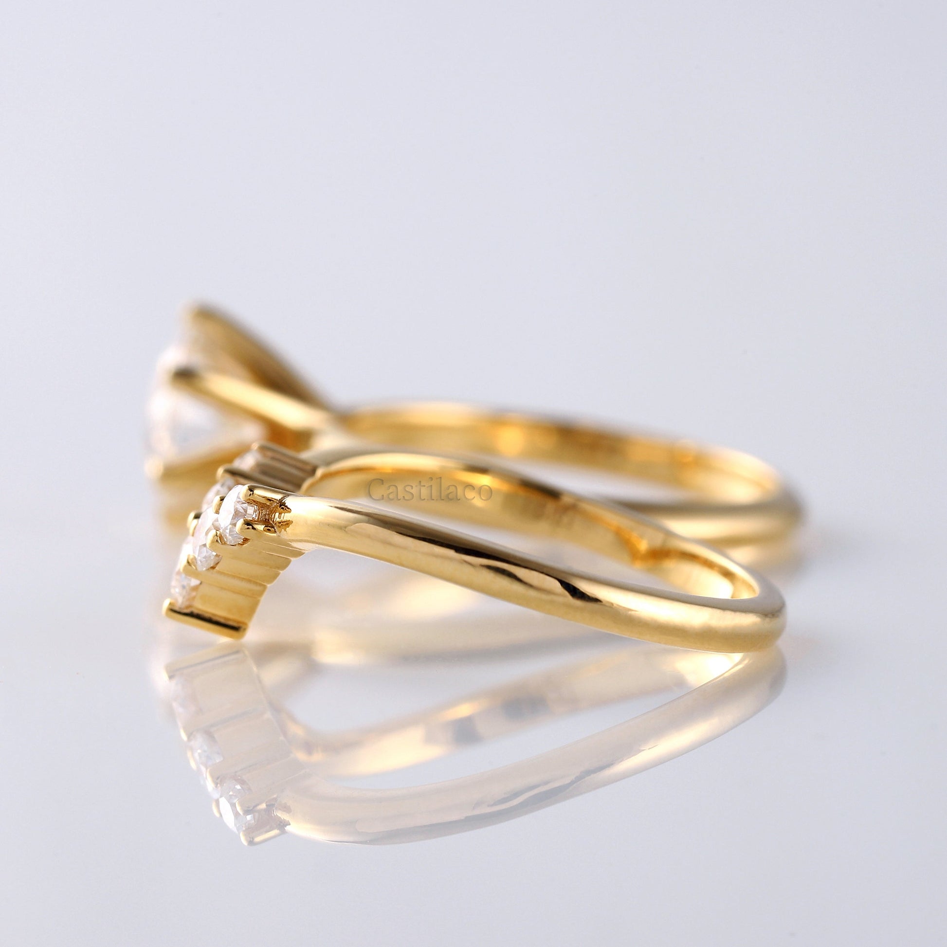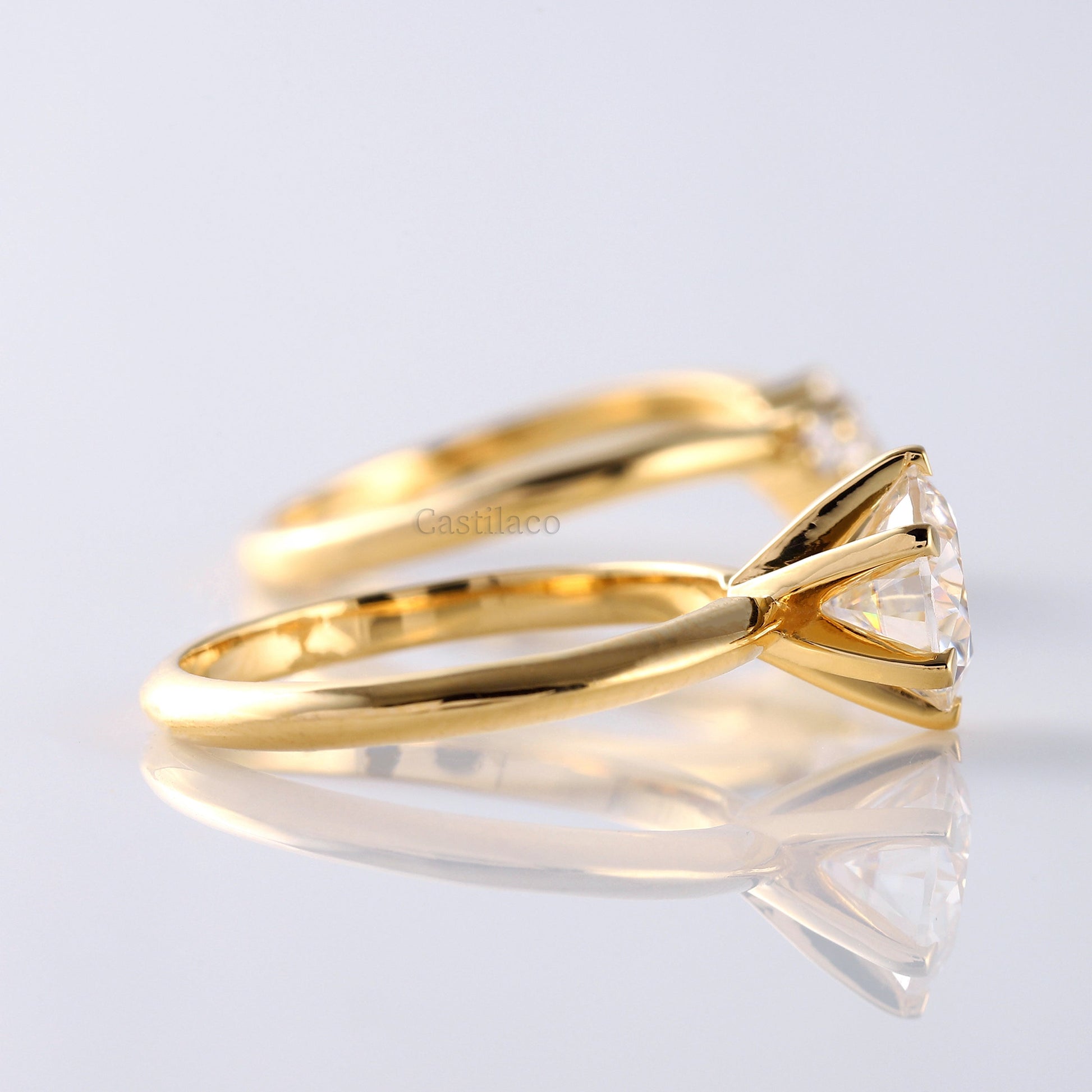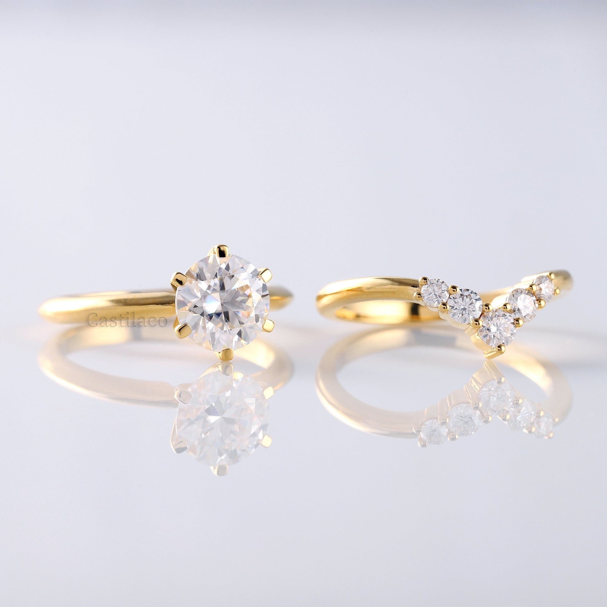 Round Moissanite Solitaire With Curved Matching Bridal Ring Set