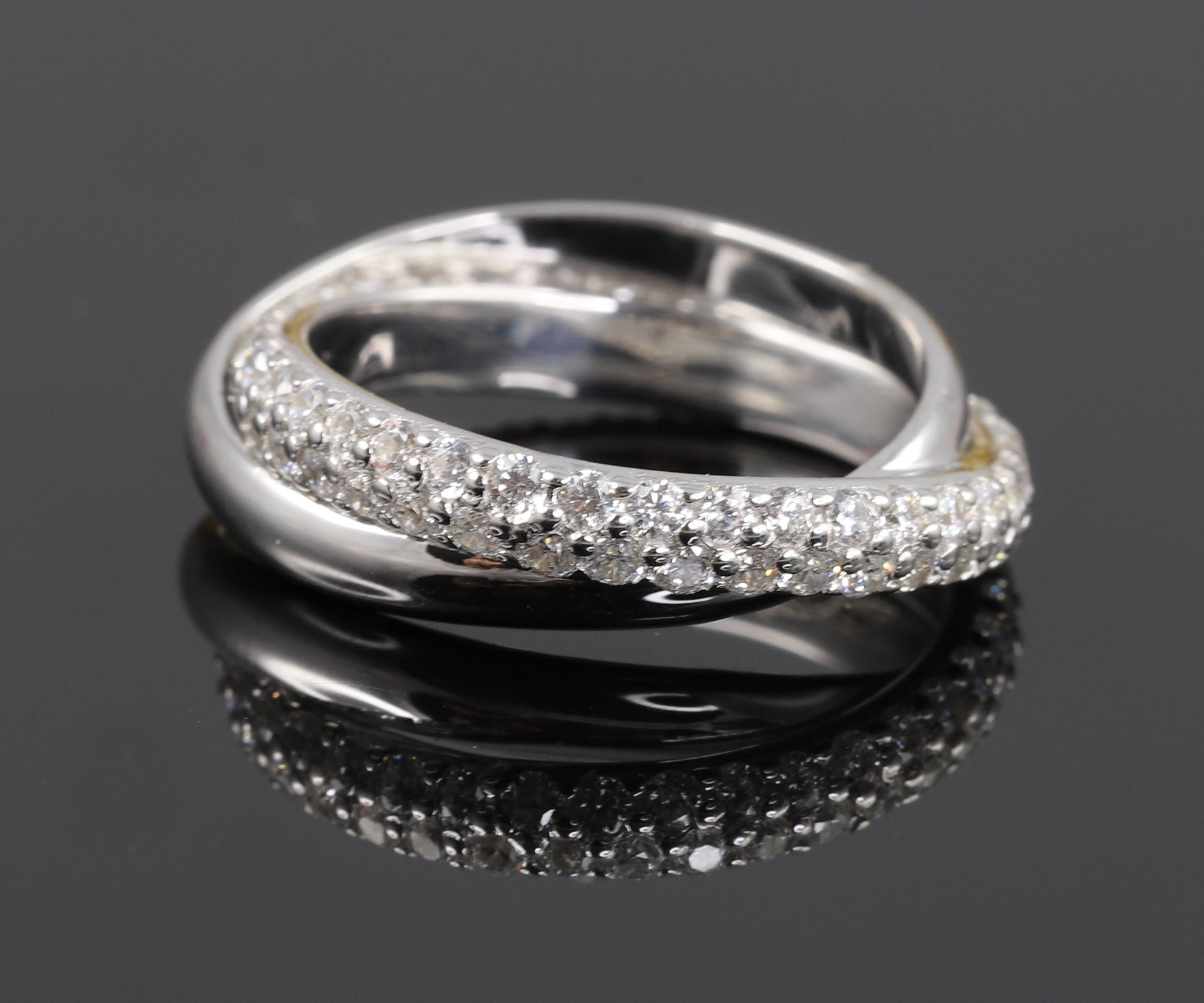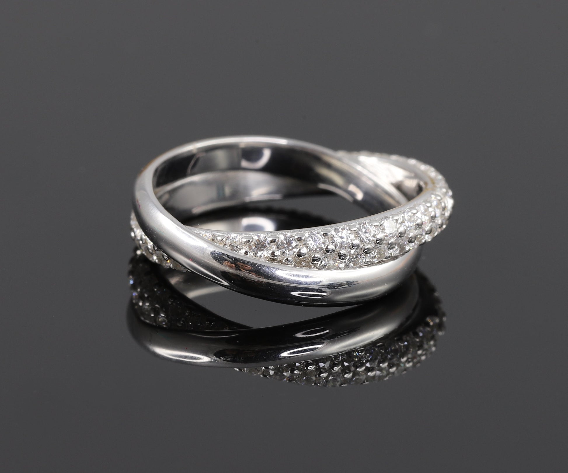 Russian Wedding Band, Cross Over Eternity Band, Round Cut Moissanite Band, Wide Interlocking Rolling Ring, 10K Solid White Gold Ring