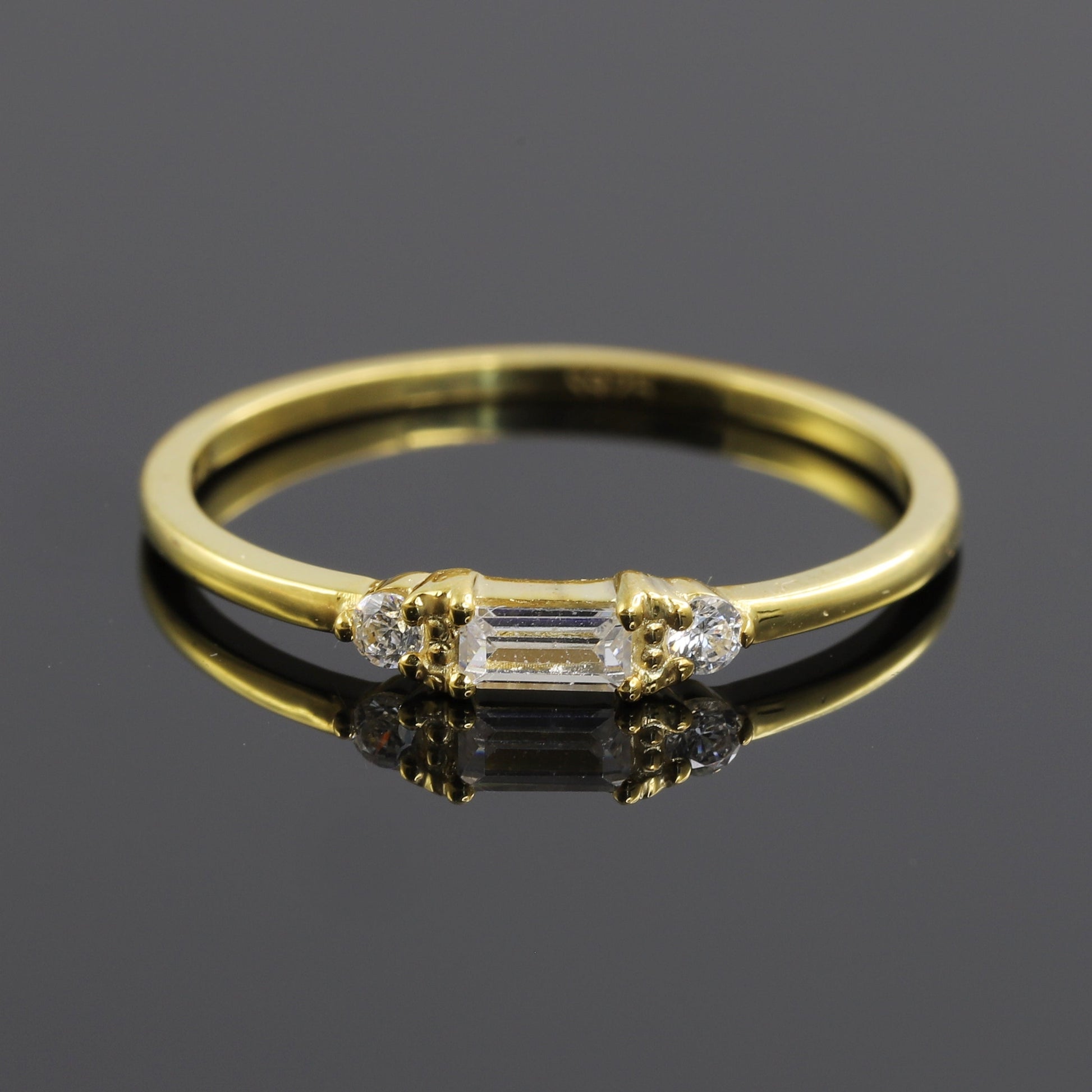 Three Stone Baguette Cut Moissanite Band, East To West Diamond Ring, Bridal Diamond Rings, Minimalist Band, 14K White Gold Ring