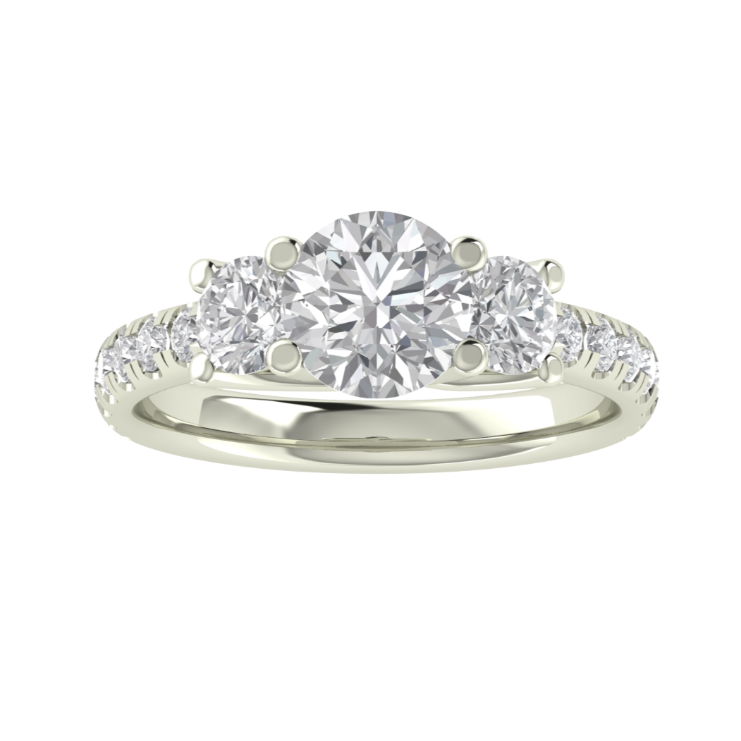 Three Stone Wedding Ring, Round Cut Moissanite Ring, Solitaire With Accent Engagement Ring, Stacking Women's Ring, 10K 14K 18K Gold Ring