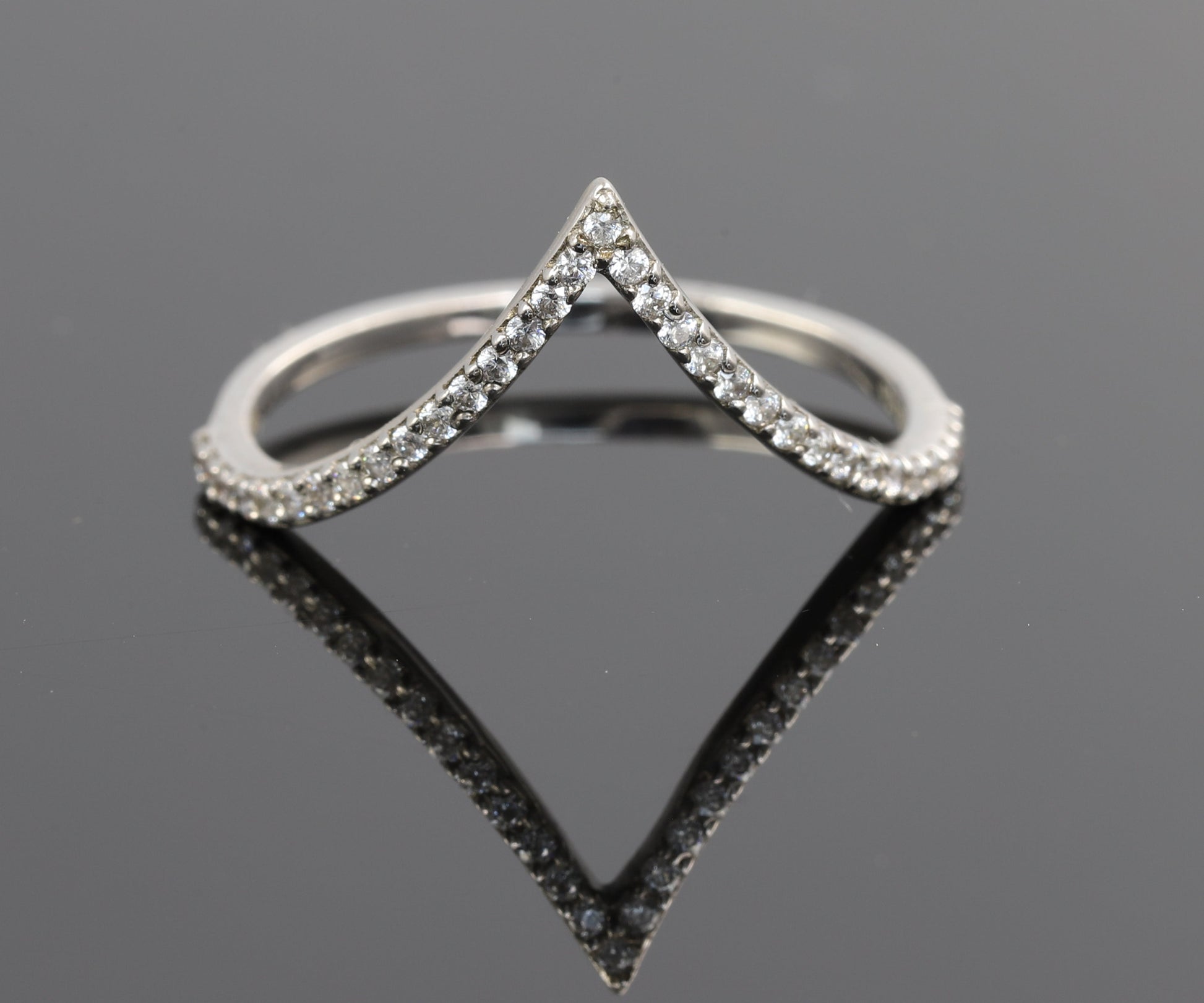Deep V Shape Wedding Diamond Band, Diamond Unique Chevron Ring, Delicate Stackable Band, Wedding Band, 10K/14K/18K Solid White Gold Ring