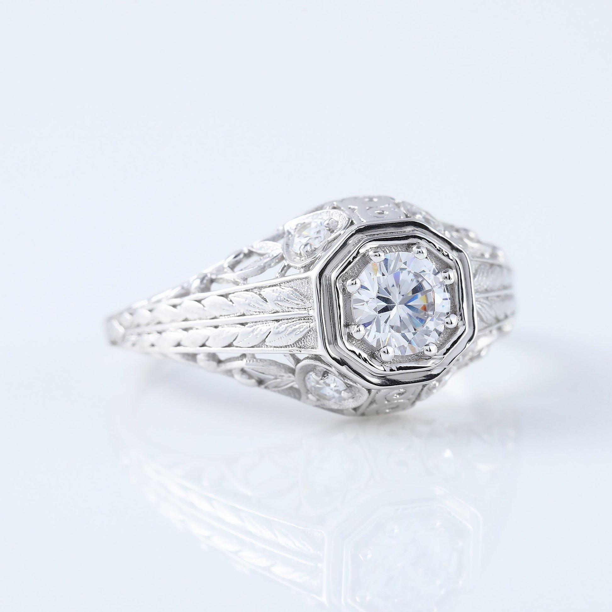 Vintage 0.60Ct Round Cut Moissanite Diamond 1890s Art Deco Ring Vintage Ring